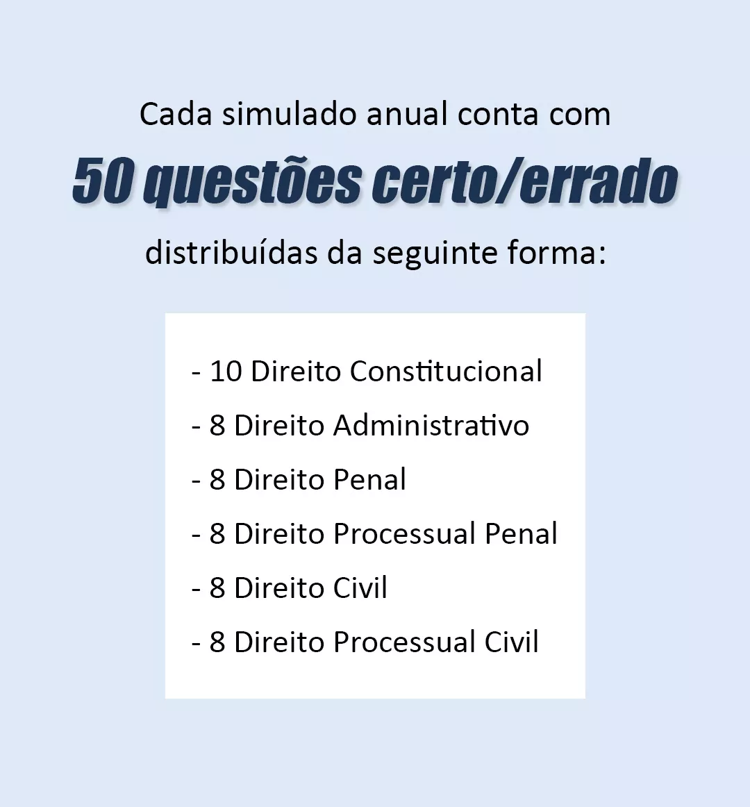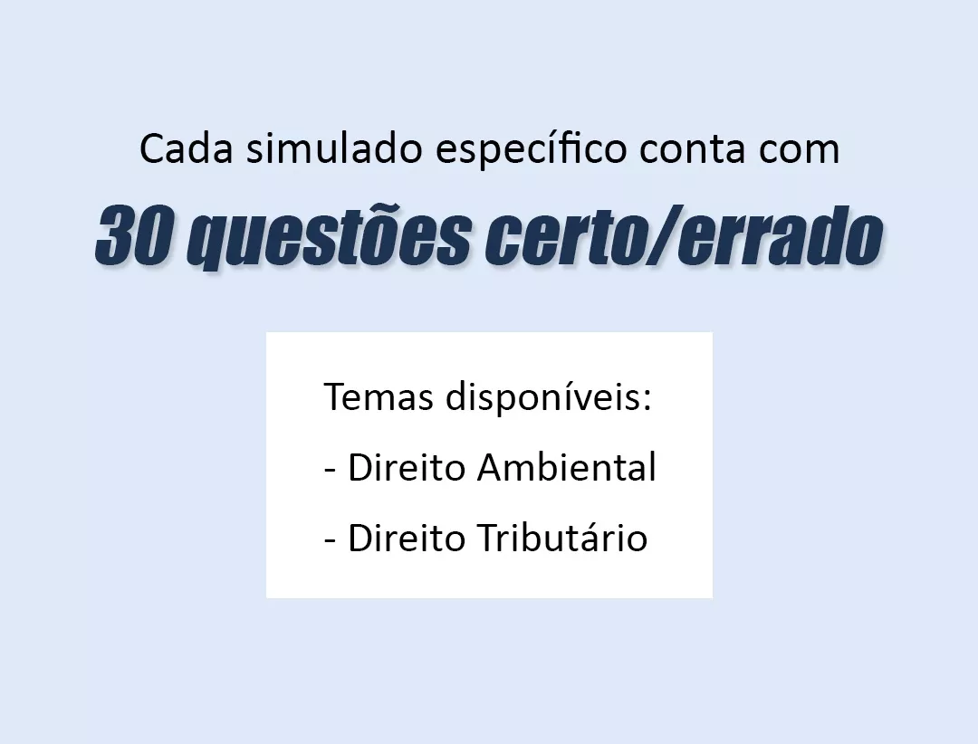 Pensando nisso, elaboramos simulados completos, com questões do tipo certo/errado, baseadas em decisões recentes do STF e do STJ.